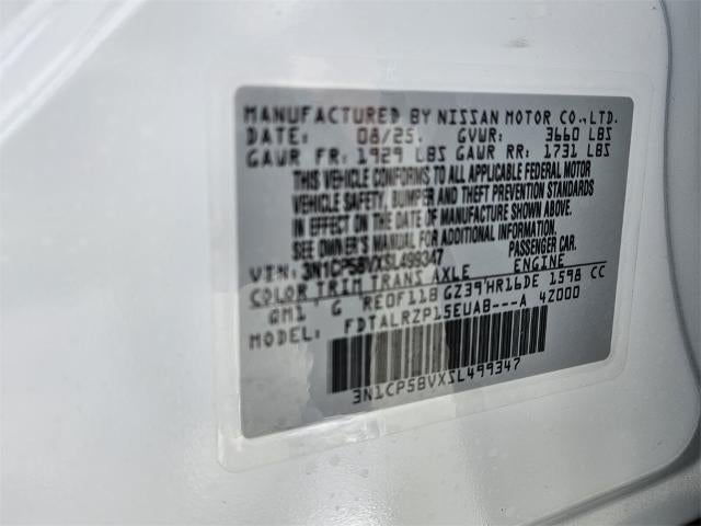 Fresh Powder 2025 Nissan Kicks Play S FWD CVT 1.6L 4-Cylinder DOHC 16V