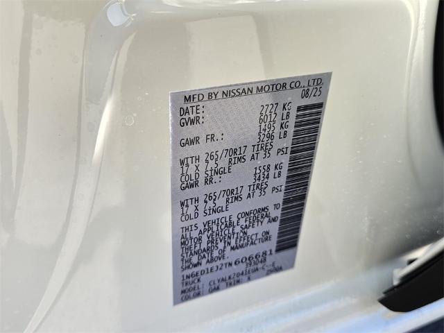 Glacier White 2026 Nissan Frontier PRO-X RWD 9-Speed Automatic with Overdrive 3.8L DI DOHC 24V V6 Price does not include tax, tag, title, Government fee, and $799 dealer doc fee. Prices do include all applicable factory rebates.$2500 - Nissan Customer Cash. Exp. 02/02/2026